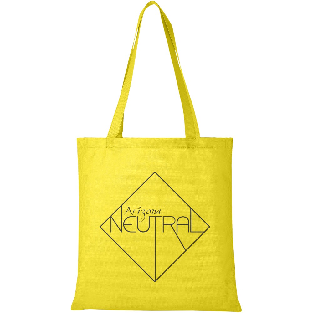 A Zeus nagyméretű, nemszőtt táska tökéletes választás konferenciákra, kiállításokra. Fülek magassága 29,2 cm. Újrahasznosítható anyag. 80 g/m2 nemszőtt polipropilén.
