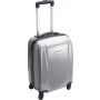 Keményfedelű bőrönd PC/ABS műanyagból, 4 körbeforgó kerékkel, beépített számzárral. Emblémzásra alkalmas fémlappal, ami fixen a terméken van.