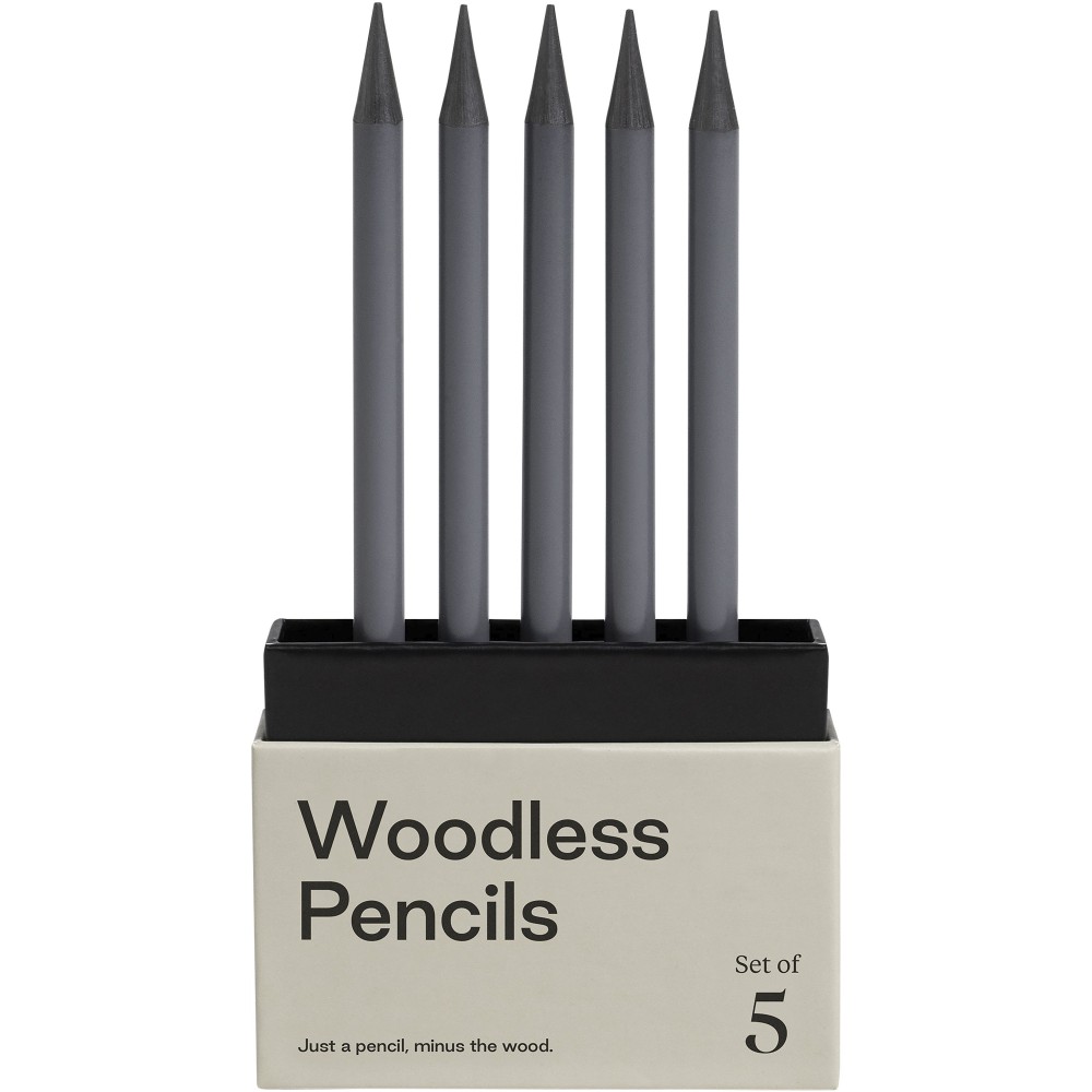 5 db-os grafitceruza készlet ceruzánként 5-ször több grafittal. A fa nélküli konstrukció sokoldalúságot tesz lehetővé, miközben a hagyományos faforgács okozta rendetlenség elkerülhető.
