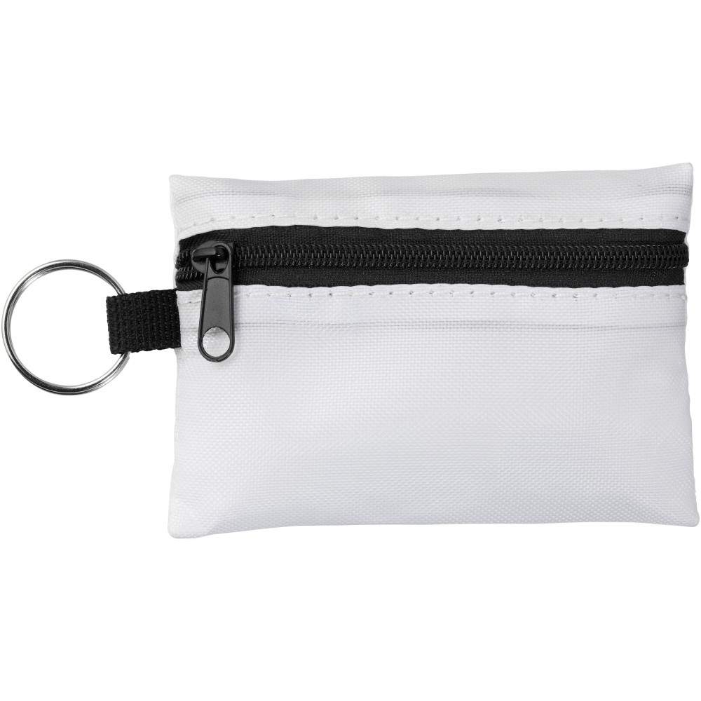 Elsősegélykészlet kulcstartós tokban. Engedély száma: 93/42/EEC. 420D poliészter.