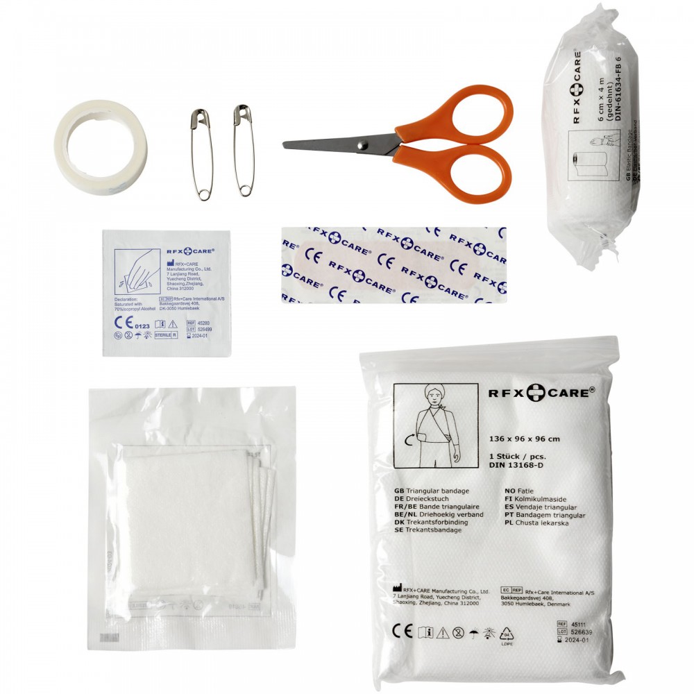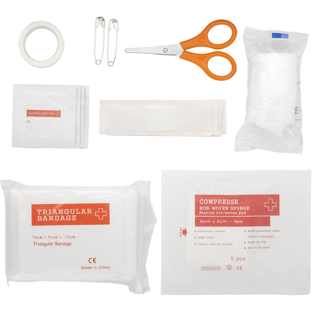 16 darabos elsősegély készlet, piros