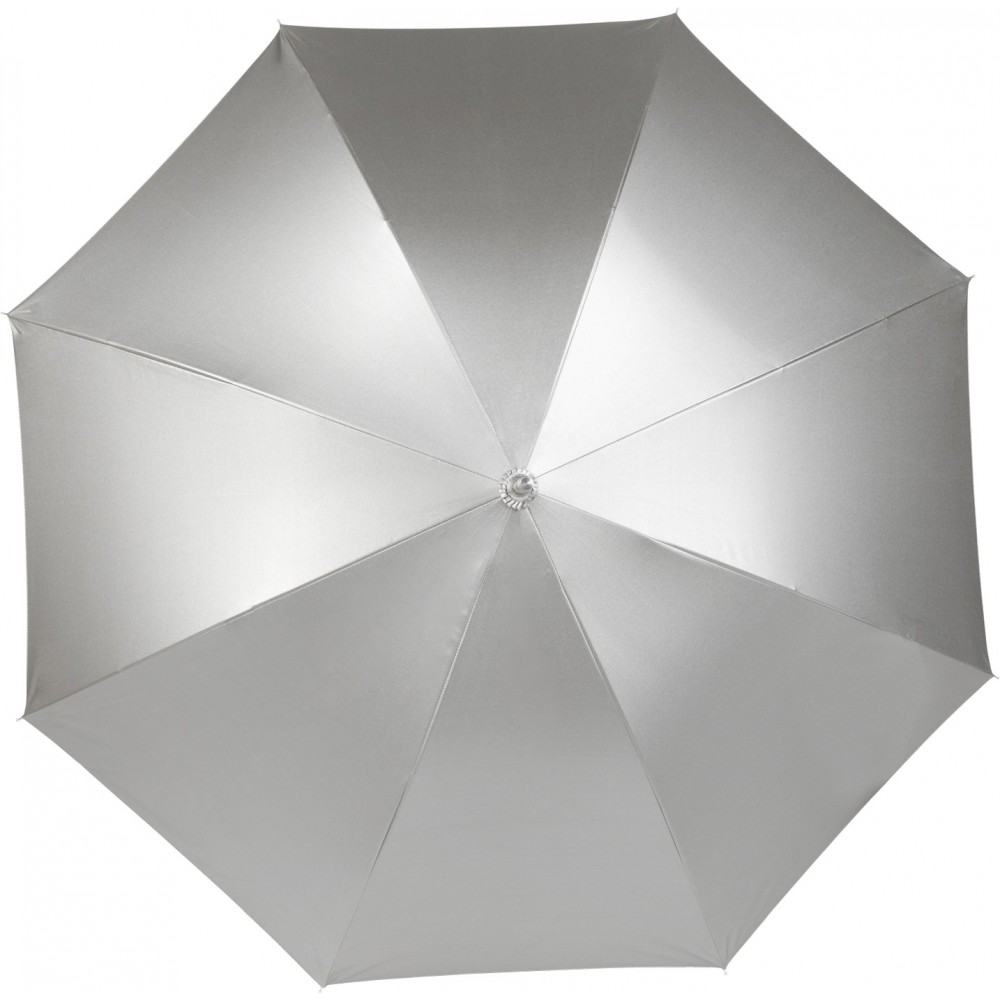 Automata esernyő. 8 panellel, selymes belső felülettel, fényes alumínium kerettel és hajlított nyéllel. Nylon.