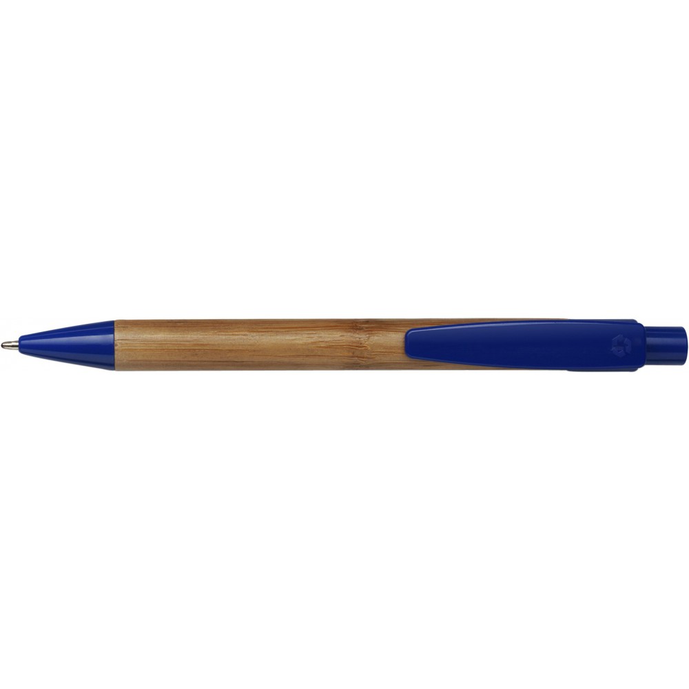 Bambusz golyóstoll műanyag kiegészítőkkel, kék tollbetéttel.