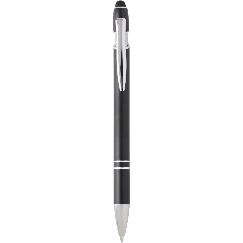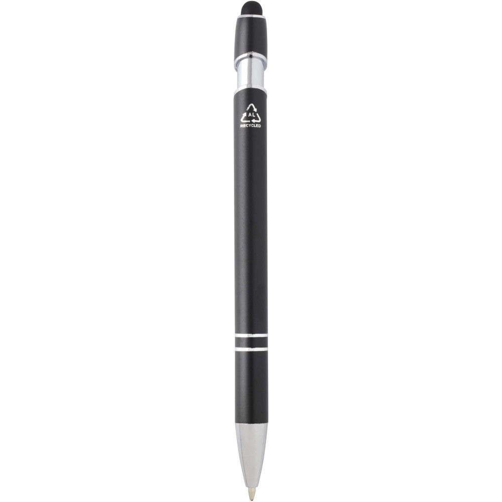 Kish golyóstoll ezüst színben. A toll teste újrahasznosított alumíniumból, az érintőceruza pedig szilikonból készült, így érintőképernyős eszközökhöz is használható. Az újrahasznosított alumínium csökkenti a hulladéklerakók terhelését, segít megőrizni a természeti erőforrásokat, és célja az üvegházhatású gázok kibocsátásának mérséklése. Tinta színe: kék. Íráshossz: 800 méter. Tollhegy mérete: 1,0 mm.