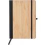 Jegyzetfüzet bambusz borítóval, 96 vonalas lappal és gumis záródással. kb. A5-ös méret. PU.