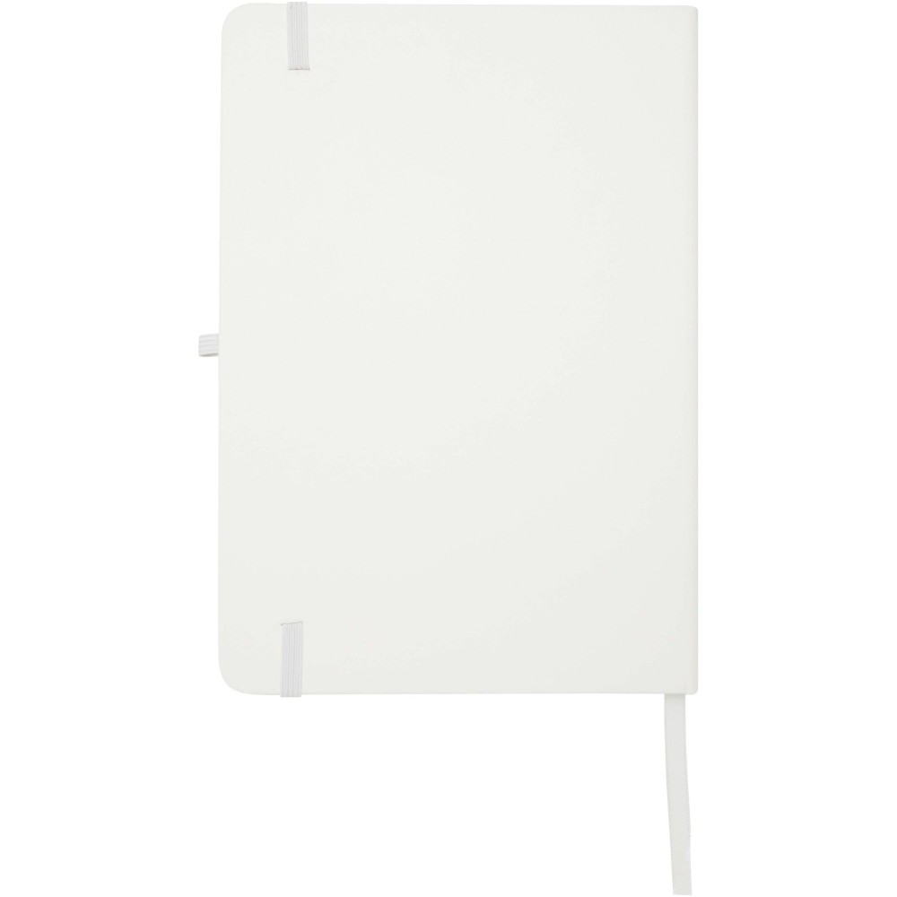 Spectrum A5 jegyzetfüzet, sötétkék Újrahasznosított spirálfüzet tollal, 60 lapos, piros/natúr A5-ös jegyzetfüzet könyvjelzővel, fekete Atlana A5-ös füzet, barna Thalaasa óceáni műanyag keményfedeles füzet, fehér