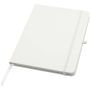 A Teak A5 méretű, újrahasznosított karton keménytáblás jegyzetfüzet lekerekített sarkokkal nemcsak irodai alapdarab, hanem kiváló lehetőség a márka népszerűsítésére is. A jegyzetfüzet 96 darab 70 g/m2-es vonalas lapot tartalmaz és puha tapintású borítóval rendelkezik. Beépített tolltartó hurokkal, rugalmas zárópánttal és könyvjelzővel van ellátva.