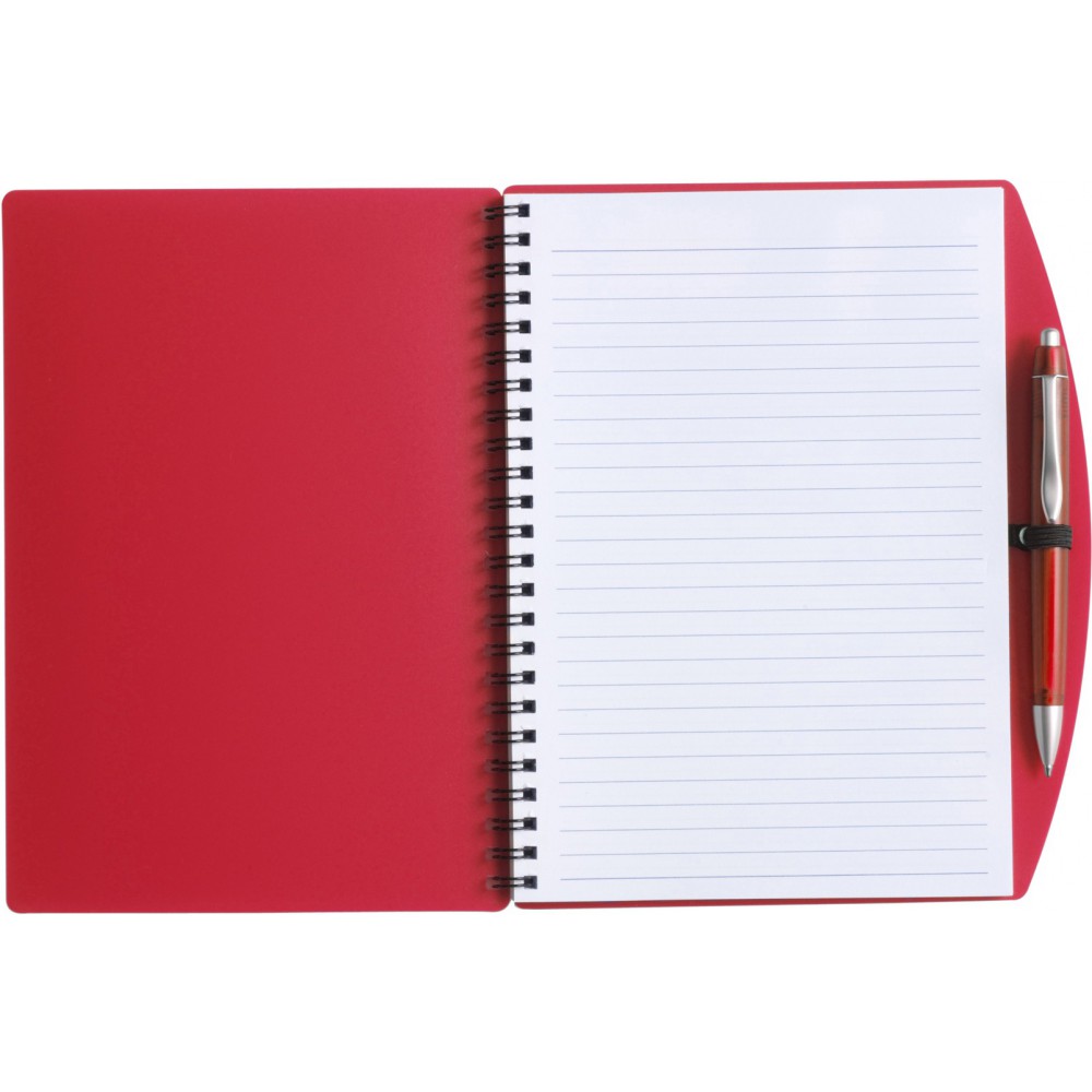 A5-ös spirálfüzet műanyag tollal, piros