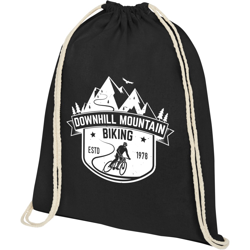 Tornazsák natúr húzózsinórral. Teherbírás: 5 kg. 140 g/m2 pamut. Pamut, 140 g/m2.