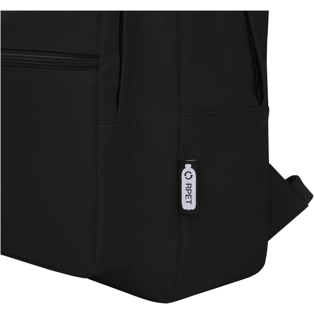Hátizsák 100%-ban újrahasznosított műanyagból készült, amivel hozzájárulunk a műanyag hulladék csökkentéséhez. Állítható vállpántok, 2 cipzáras rekesz és egy első cipzáras zseb. Körülbelül 15 palack újrahasznosításából gyártott termék. RPET.