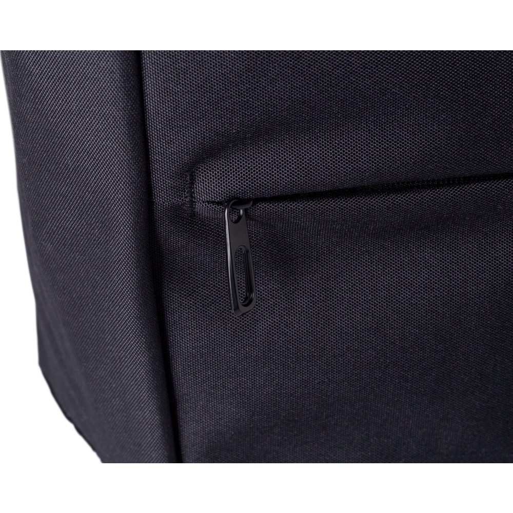 Kéttónusú poliészter (600D) hátizsák PU címkével a ráhajtón. Egy cipzáras zseb az elülső oldalon. Egy nagy rekesz a felső oldalon fém záródással. Laptoprekesz, amely egy 15 colos laptop számára alkalmas. A hátizsák megerősített hátlappal és állítható vállpántokkal rendelkezik.