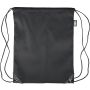 Tornazsák 210D poliészter anyagból, fekete PU sarokerősítéssel az elején, és belső varrással. Fekete nylon húzózsinórral, egy rekesszel. Űrtartalom: 5 liter, teherbíró képesség: 7 kg. rPET címkét tartalmaz.