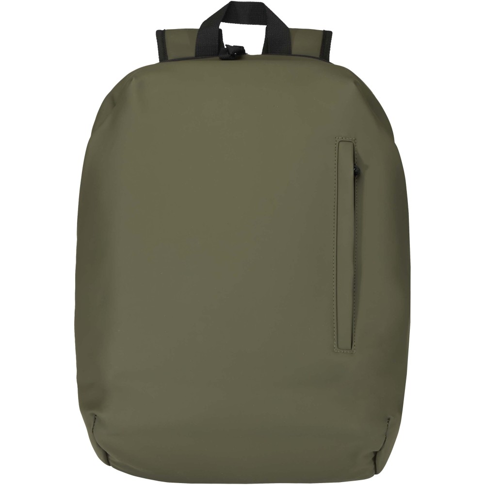 A prémium minőségű, GRS tanúsítvánnyal rendelkező újrahasznosított PU bőrből készült, színben passzoló RPET béléssel ellátott 15?-os biztonsági hátizsák garantálja az értékek védelmét és szárazon tartását útközben. A termék hátulról hozzáférhető laptoprekeszel, két letisztult oldalsó zsebbel, valamint egy vízálló cipzárral felszerelt elülső zsebbel rendelkezik. A légáteresztő hátlap biztosítja az egész napos kényelmet, így ideális választás ingázáshoz, utazáshoz vagy városi használatra. Űrtartalma: 18 liter.