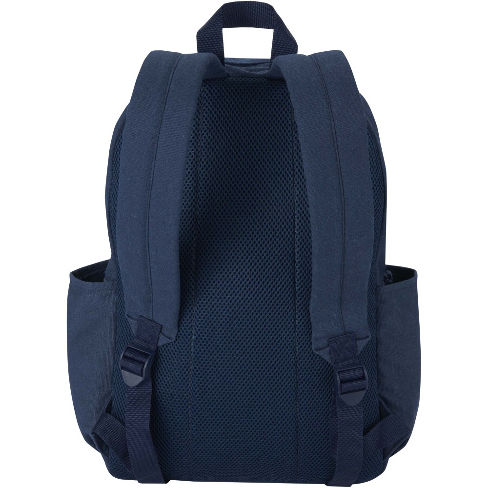 A Recanvas városi hátizsák GRS tanúsítvánnyal rendelkező, újrahasznosított és vízlepergető vászonból készült, színben harmonizáló RPET béléssel. A 16 literes űrtartalmú táska egy párnázott, 15,6"-os laptoprekesszel és egy további párnázott tárolórekesszel rendelkezik, emellett egy cipzáras elülső zsebbel, két oldalsó zsebbel, légáteresztő hálós hátrésszel és a kényelmes viseletet biztosító állítható vállpántokkal. Kialakítása révén ideális választás ingázáshoz, iskolába vagy egyéb napi használatra.