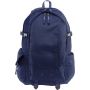 Hátizsák két nagy cipzáras rekesszel és két oldalzsebbel. PU és 210D bordás anyag.