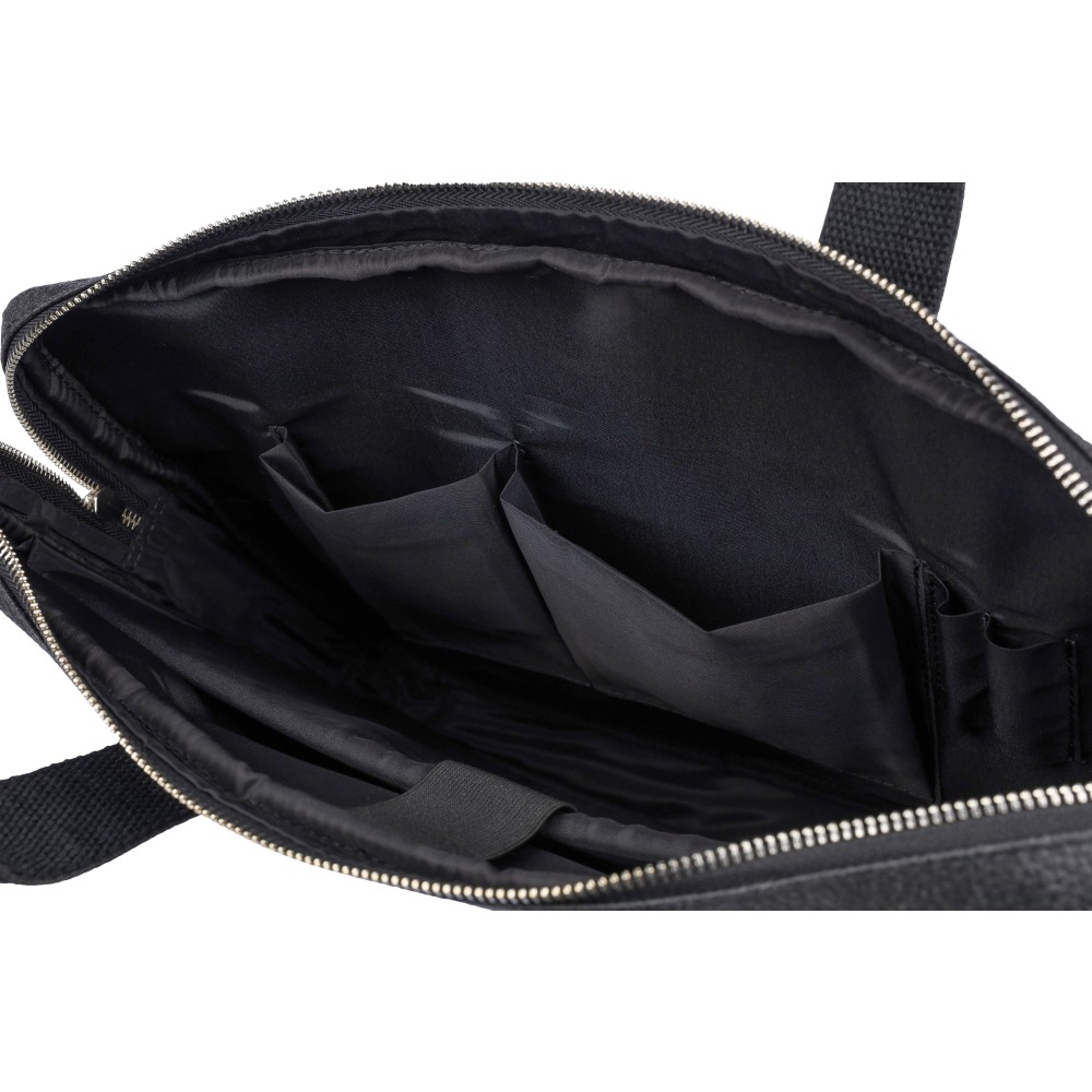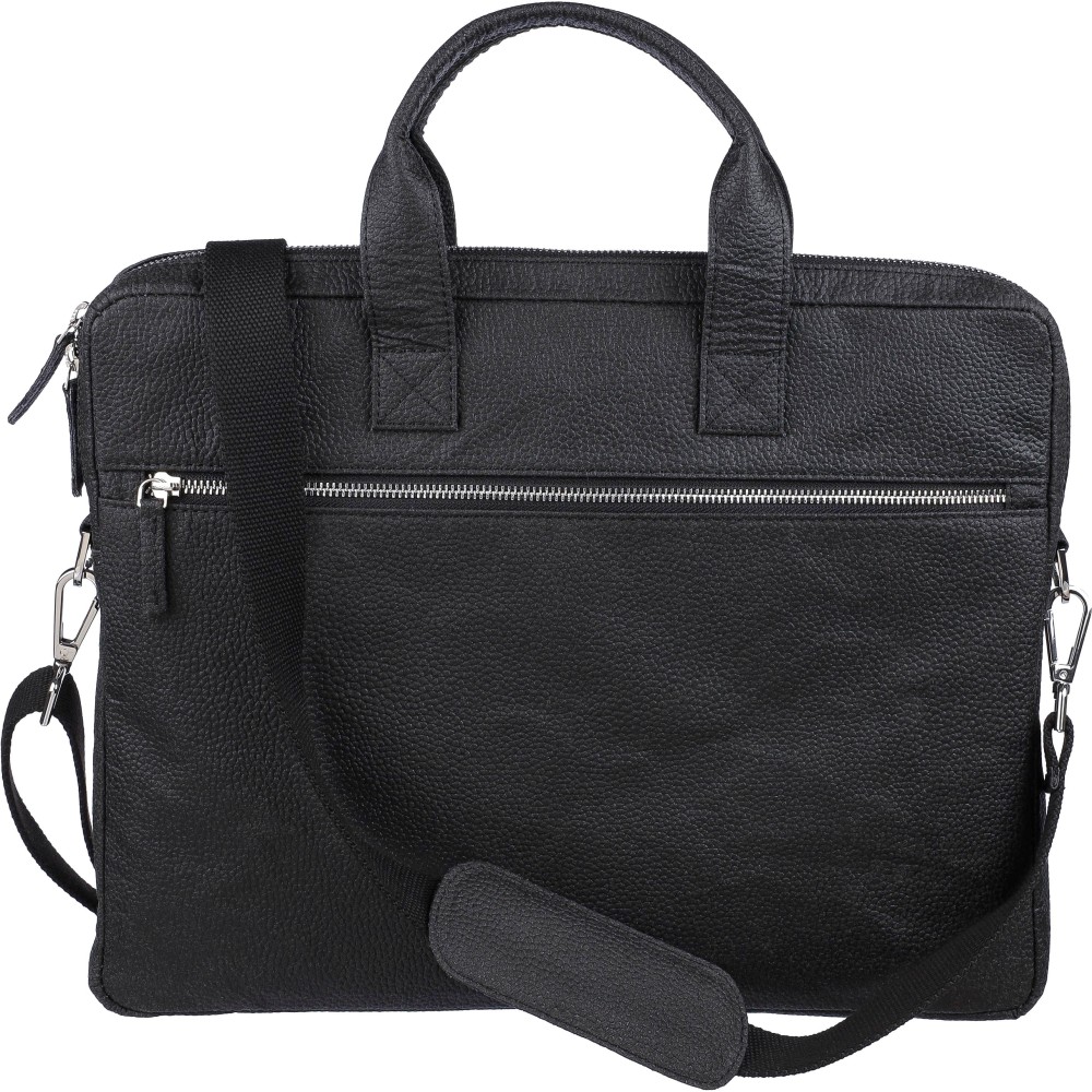 Laptoptáska paradicsom felhasználásával (15 inch), cipzáras rekeszekkel az elején és a tetején, valamint párnázott laptop zsebbel, tépőzáras záródással. Belsejében több kisebb zseb található. Állítható vállpántokkal rendelkezik. Anyagösszetétel: 50% pamut, 30% paradicsom, 20% biopolimer.