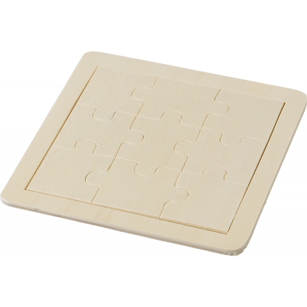 9 darabos fa kirakójáték. A kirakófelület egyedi grafikával dekorálható.