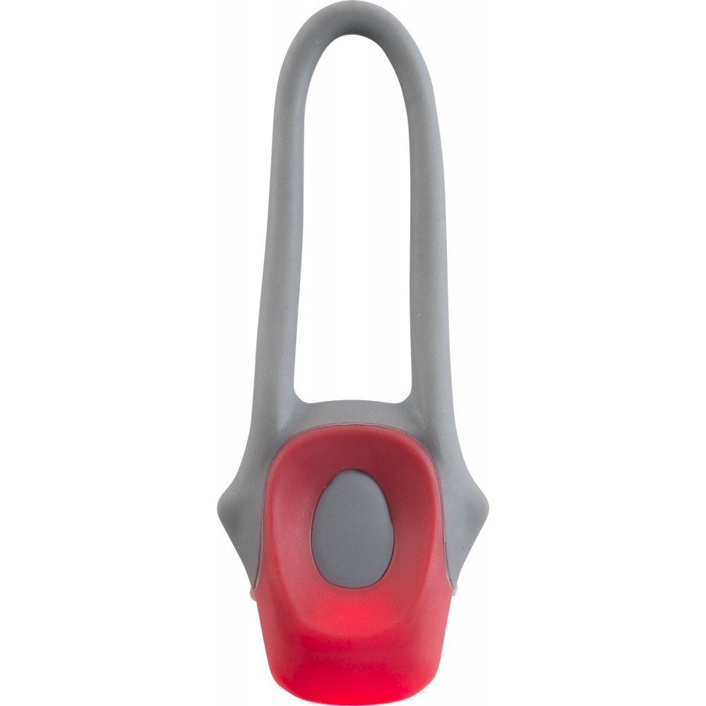 Műanyag kerékpáros lámpa két LED-del, szilikon rögzítőpánttal, kétféle villogó funkcióval és ki/bekapcsoló gombbal. A fehér színű lámpa első világításnak, a piros pedig hátsó világítás céljára alkalmas. Az elemet tartalmazza.