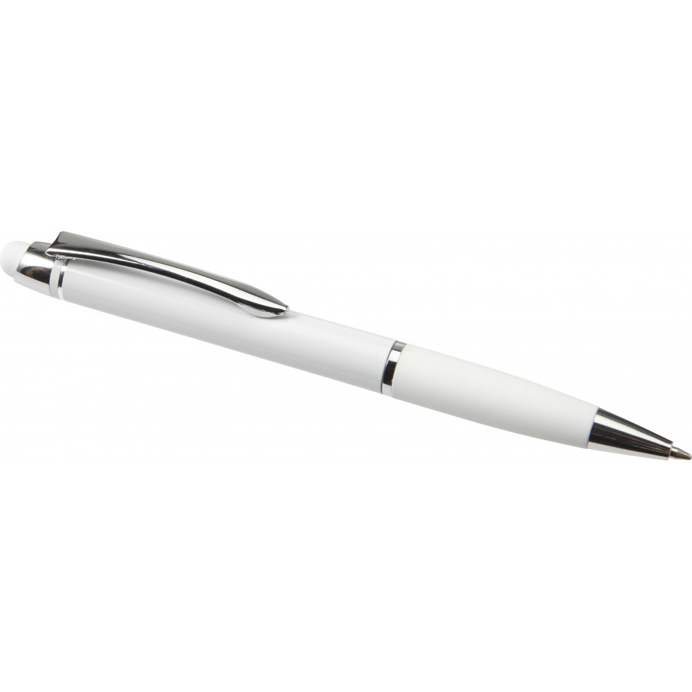Golyóstoll érintővel, fényes felülettel, színben illeszkedő gumis fogórésszel, fényes ezüst kiegészítőkkel, fekete tollbetéttel. Alumínium.