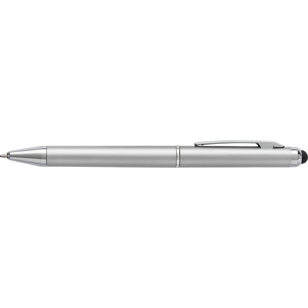 Műanyag golyóstoll érintővel, kék tollbetéttel, ezüst