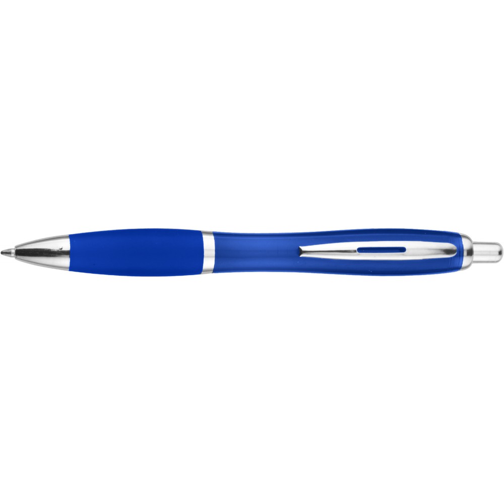 Újrahasznosított ABS műanyag golyóstoll kék tollbetéttel.