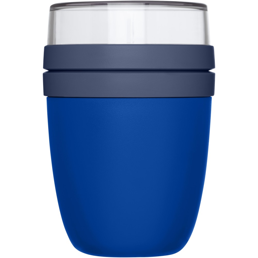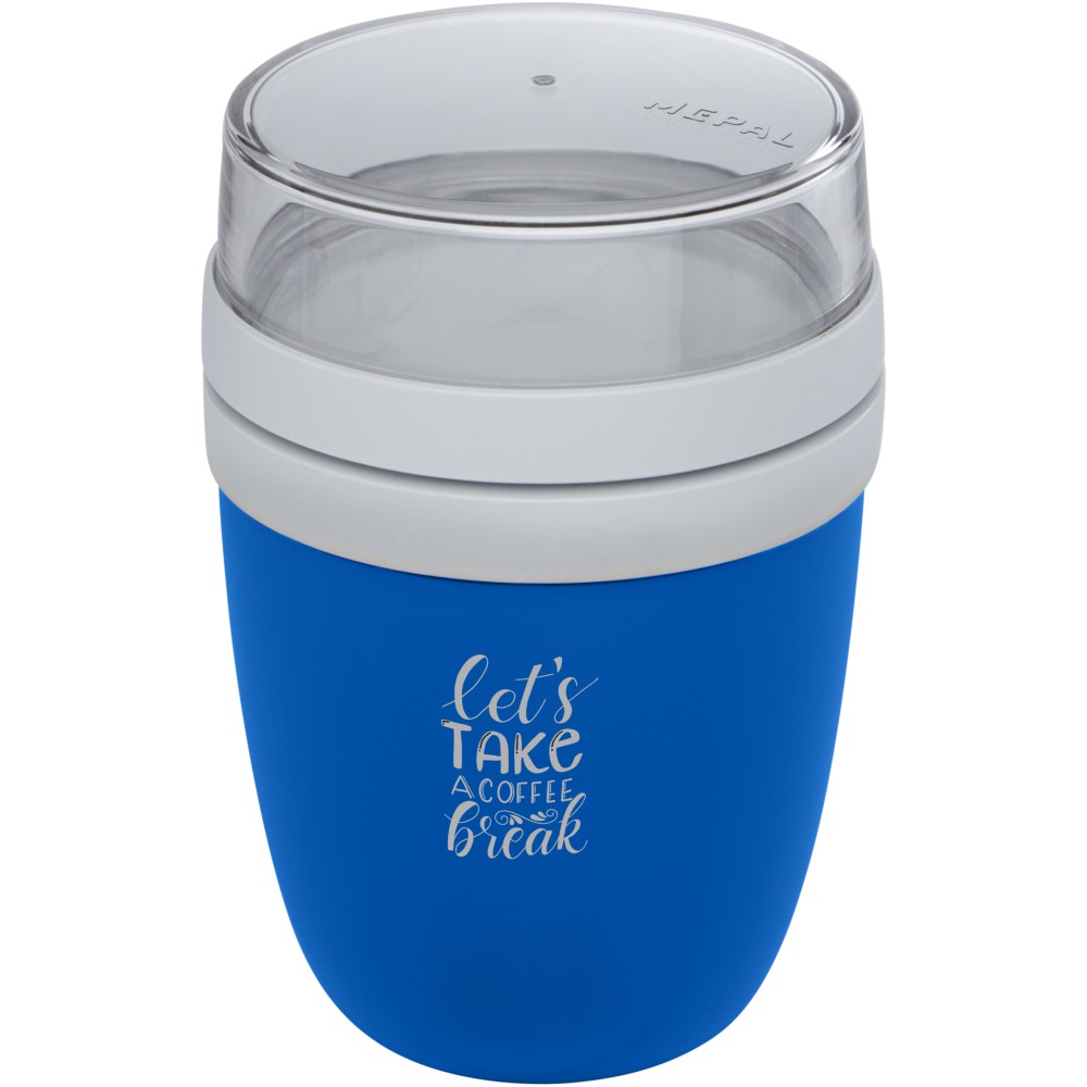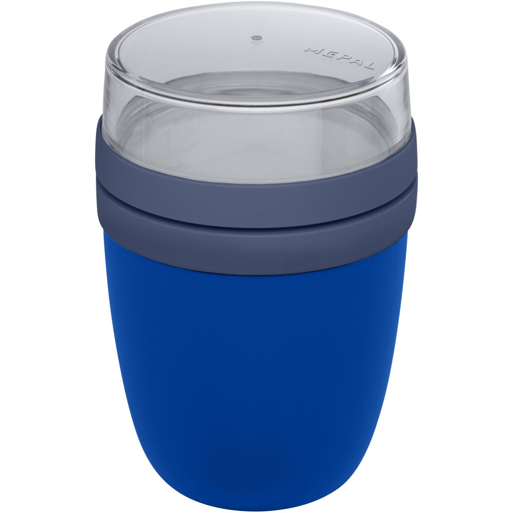 Ételtartó edény két rekesszel. Mindkét tartálynak külön fedele van. A felső, átlátszó rész űrtartalma 200 ml. Az alsó edény 500 ml-es. Fagyasztóba, mikrohullámú sütőbe (fedél nélkül), és mosogatógépbe tehető. A felső, átlátszó rész nem tehető mikrohullámú sütőbe. Szivárgásmentes. BPA mentes. PP műanyag, PCTG műanyag.