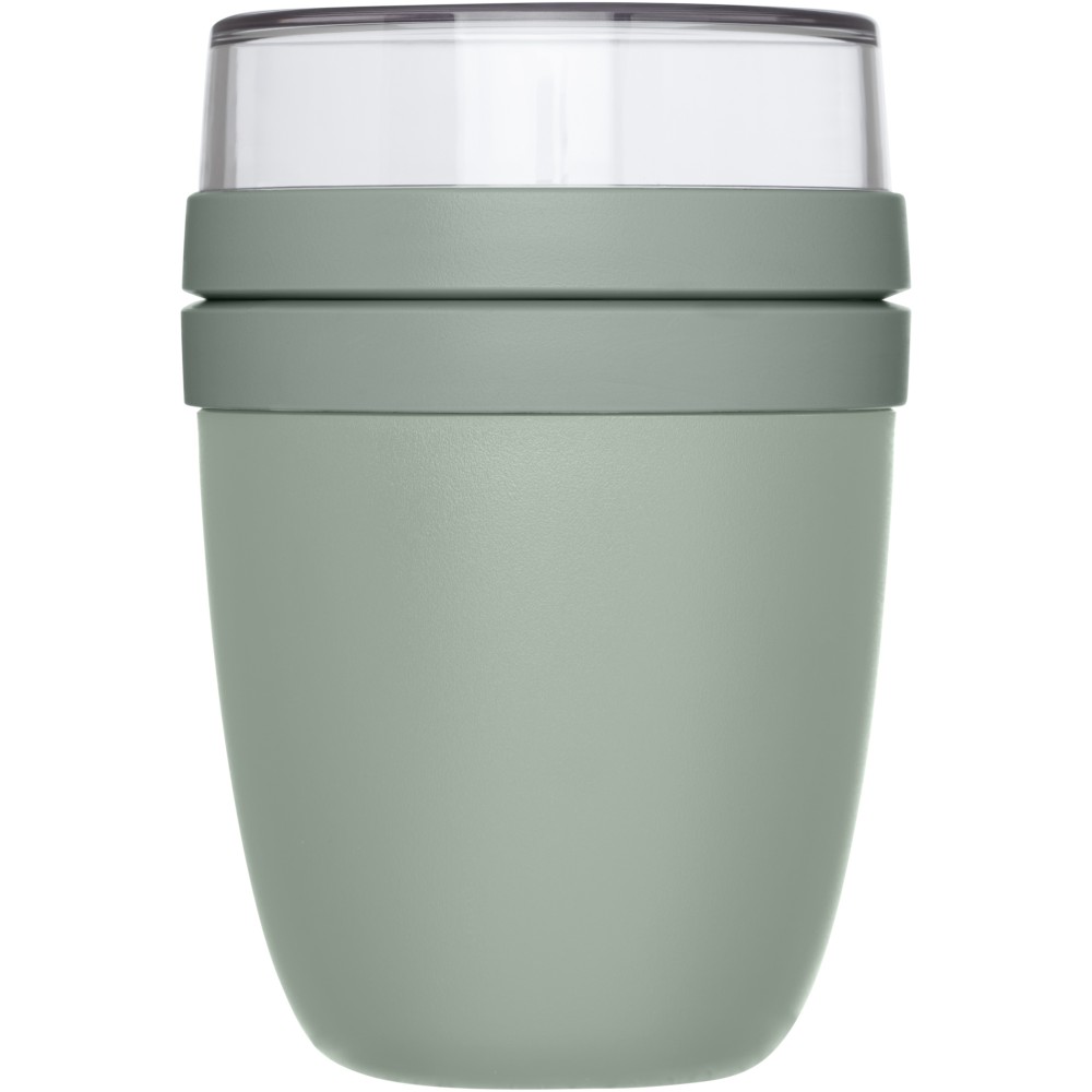 Ételtartó edény két rekesszel. Mindkét tartálynak külön fedele van. A felső, átlátszó rész űrtartalma 200 ml. Az alsó edény 500 ml-es. Fagyasztóba, mikrohullámú sütőbe (fedél nélkül), és mosogatógépbe tehető. A felső, átlátszó rész nem tehető mikrohullámú sütőbe. Szivárgásmentes. BPA mentes. PP műanyag, PCTG műanyag.