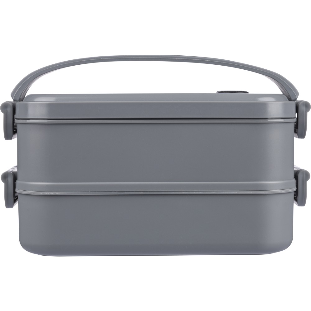 1600 ml-es PP ételtároló doboz 2 db, egyenként 800 ml-es résszel. Szilikon szeleppel a mikrohullámú sütőben történő melegítéshez, csatos záródással és szilikon hordozófüllel. Mosogatógépben tisztítható.