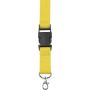 Nyakpánt cseppkarabinerrel és leoldható résszel. Késztermék, teljes felülete nem emblémázható. 300D poliészter.