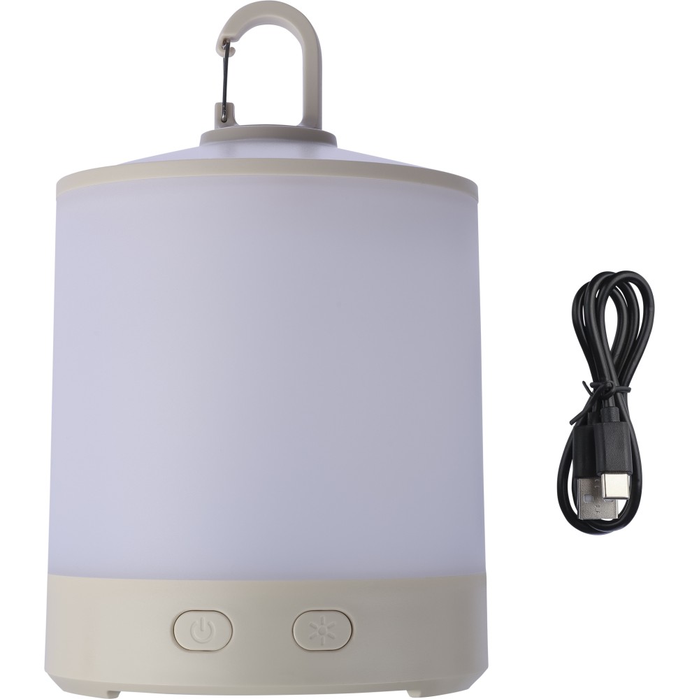 Multifunkciós lámpa kempingezéshez. Levehető elemlámpával, karabinerrel, 4 világítási móddal. 8-féle színben világít, melyek közül a fehér kétféleképpen is működtethető. A másik 7 szín váltakozóra is beállítható a gomb nyomvatartásával. Az elemlámpa 800 mAh-s, a kempinglámpa 2400 mAh-s akkumulátorral rendelkezik. C-típusú csatlakozók. Csomagolása papírdoboz.