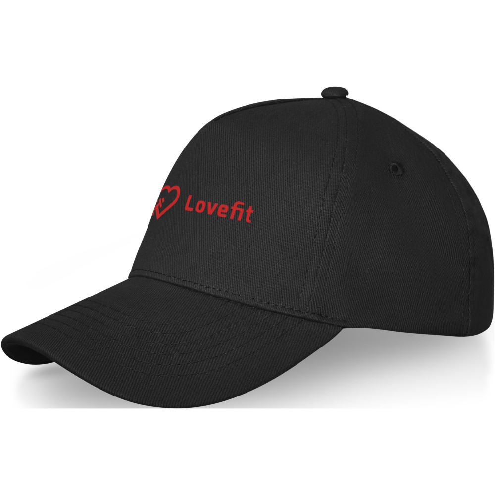 5 paneles baseballsapka ívelt simléderrel, hímzett szellőzőkkel, fém csattal. 100% twill pamut, 260 g/m2.