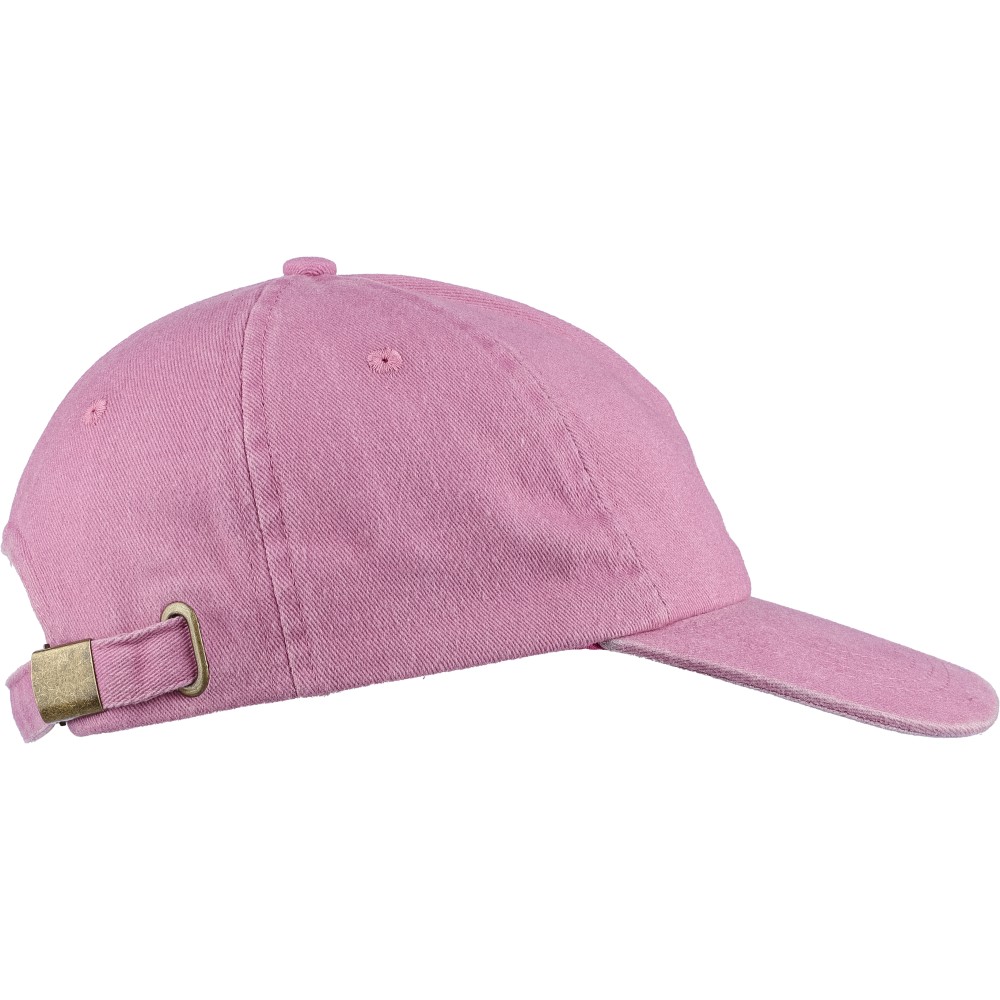 5 paneles baseballsapka 240 g/m2 vászon anyagból, koptatott hatású kivitelben, 7 cm-es ellenzővel, fémcsattal állítható pánttal. Bélés nélkül.