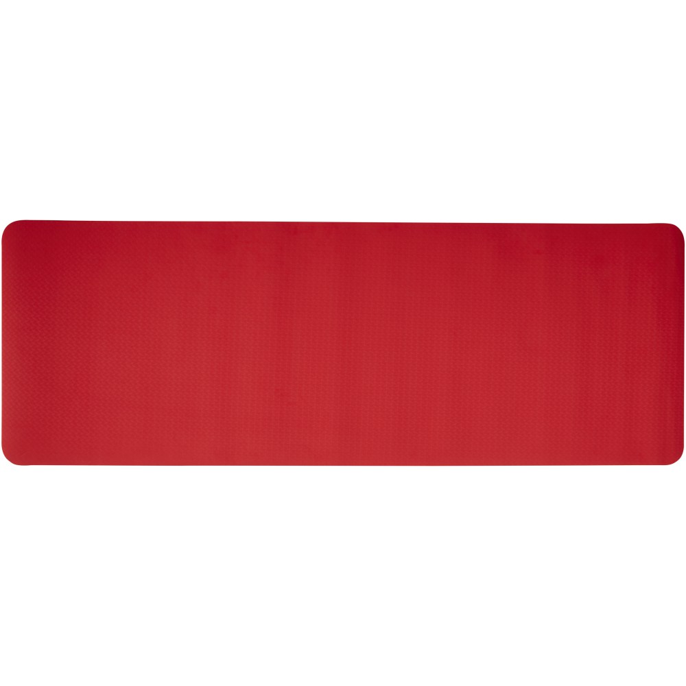 Újrahasznosított TPE műanyagból készült jógaszőnyeg. A TPE természetes csúszásgátló tulajdonságokkal rendelkezik, így stabil felületet biztosít, amely segít megelőzni a csúszást a jógapózok során. Az újrahasznosított TPE felhasználása a jógaszőnyegek gyártása során segít csökkenteni a hulladékok mennyiségét, és elősegíti a környezet fenntarthatóságát azáltal, hogy minimalizálja az új műanyagok használatát. Mérete: 173 x 61 x 0,6 cm. A tasak RPET anyagból készült.