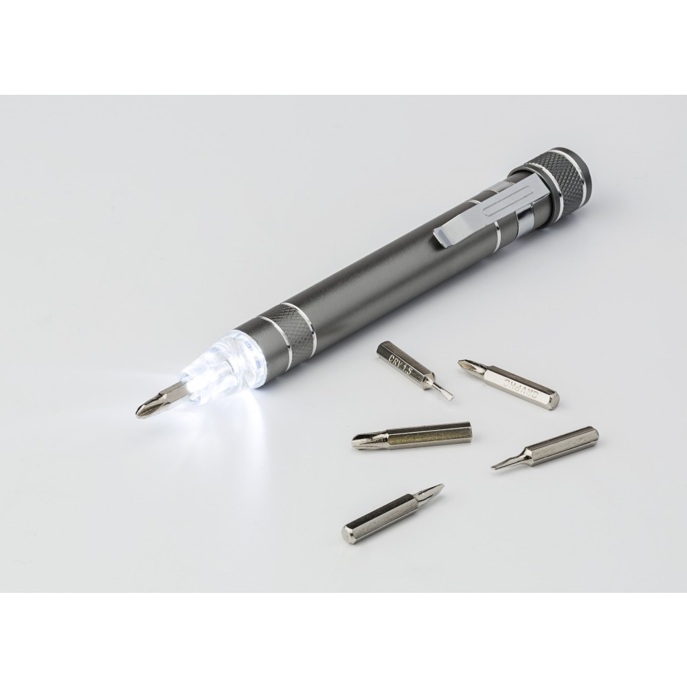 Lámpás csavarhúzókészlet, szürke