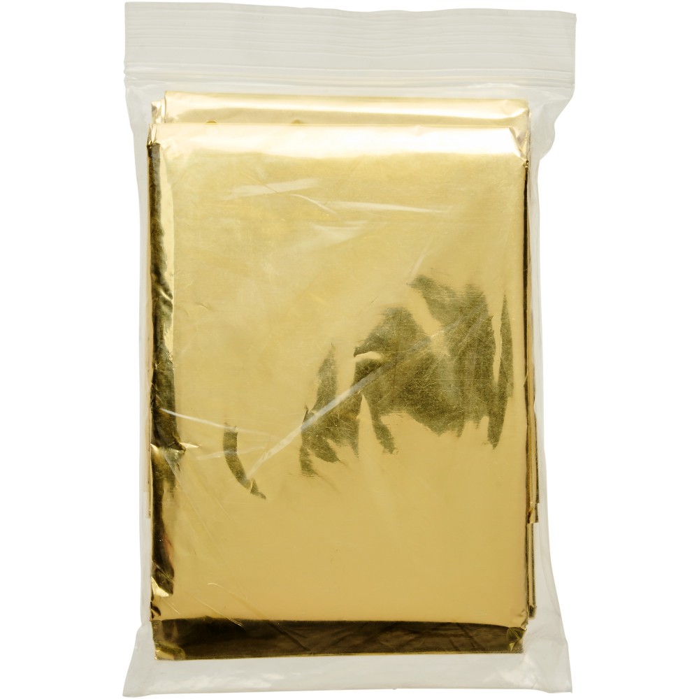 Kétfunkciós vészhelyzeti takaró. A hideg, meleg és nedvesség ellen egyaránt véd. Ha az ezüst színű felület értintkezik a testtel, akkor a hideg ellen véd, ha az arany színű, akkor a meleg ellen véd. Takaró mérete: 160x210 cm. Engedély száma: MDD 93/42/EEC, 1993. július 14. PET.