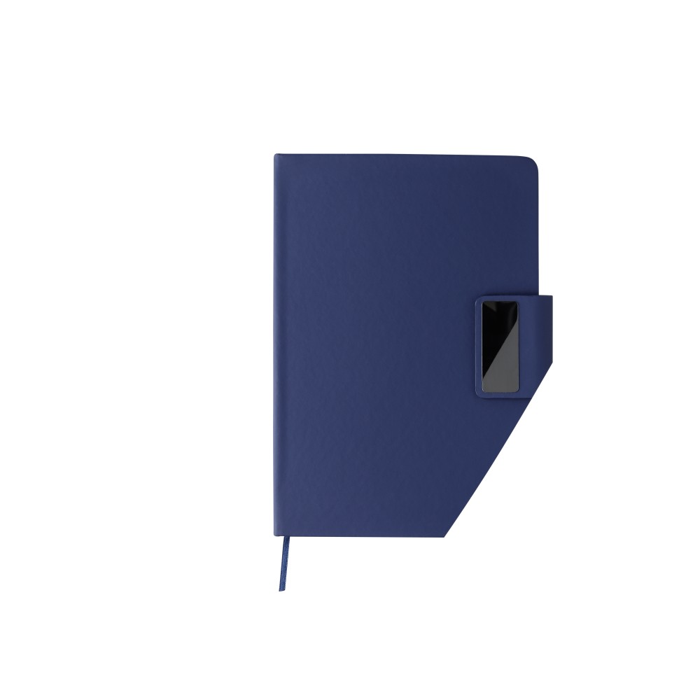 Karton ajándékkészlet. Tartalma: újrahasznosított alumínium csavaros golyóstoll kék tintával és újrahasznosított PU jegyzetfüzet. A jegyzetfüzet 80 lapos 70 g/m2-es vonalas papírral, és szalagos könyvjelzőt és fém mágneses zárat tartalmaz acélszürke gravírozott lappal. Mindkét termék újrahasznosított logóval van ellátva: dombornyomva a jegyzetfüzeten és gravírozva a tollon.