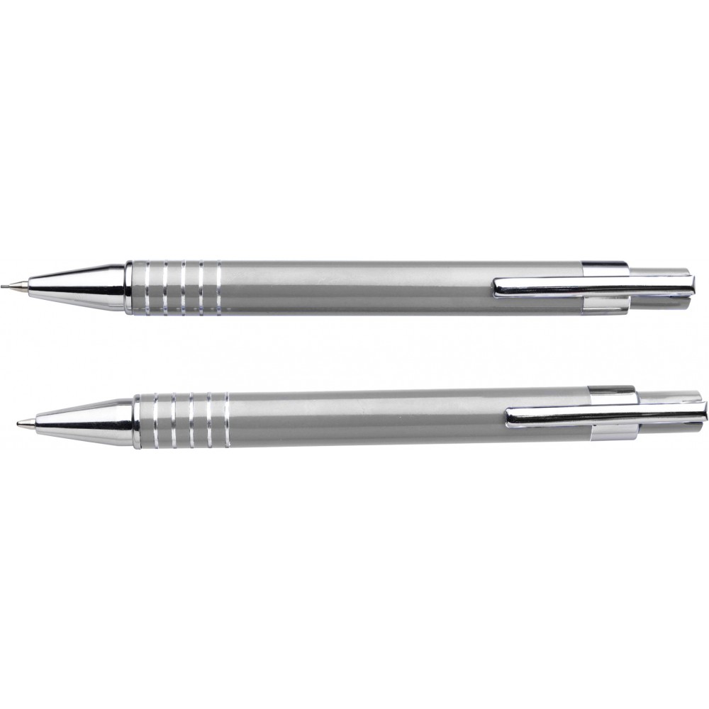 Lakkozott felületű golyóstoll fekete tollbetéttel és töltőceruza, színben hozzáillő dobozban.