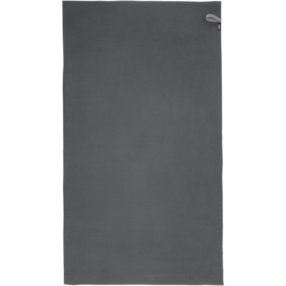 A Pieter sporttörülköző nagyon jó nedvszívó, könnyű, gyorsan szárad, az anyaga pedig tartós és rendkívül puha. Ha a törölközőt összehajtjuk és gumiszalaggal rögzítjük, kis méretűre csomagolható, így alkalmas arra, hogy magunkkal vigyük az edzőterembe, uszodába, vagy ha hátizsákos túrára, esetleg kempingezésre megyünk. A törülköző 100 x 180 cm méretű, 90% GRS újrahasznosított poliészterből és 10% nejlonból készült, és 40 °C-on mosható mosógépben. Újrahasznosított PET műanyagból készült tároló tasakkal (25 x 8,5 cm) szállítjuk.