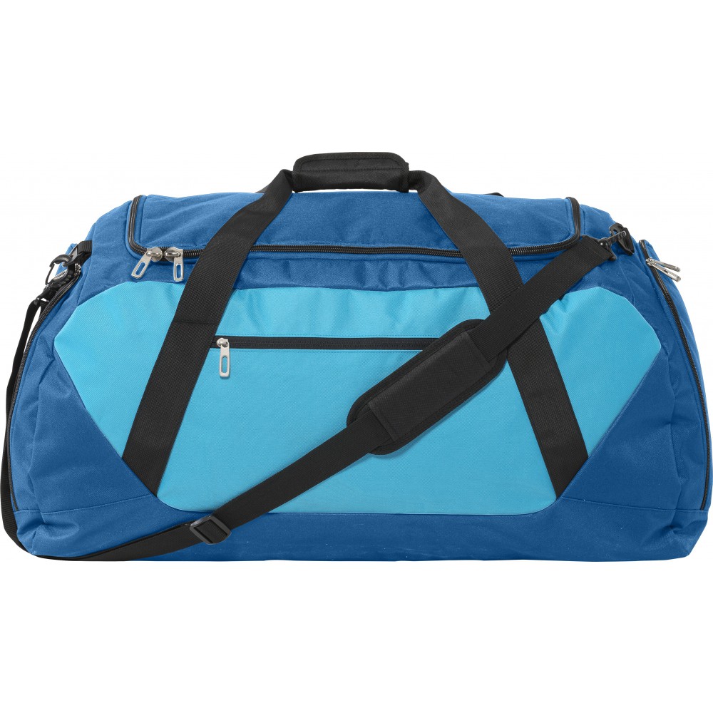 Nagy utazótáska nagy felső résszel, cipzáros első zsebbel, állítható vállpánttal. 600D poliészter.