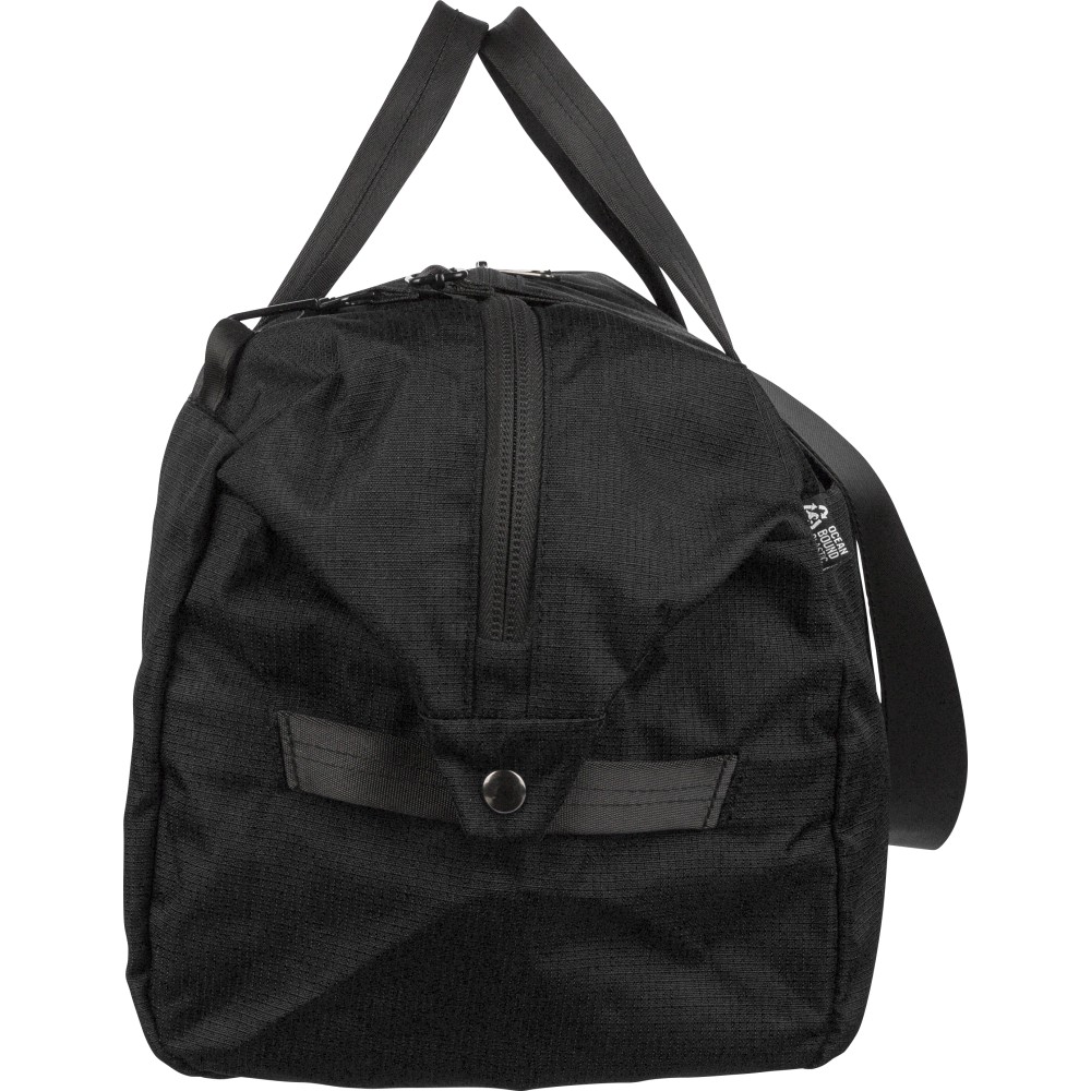 RPET 300D Ocean Bound anyagból készült sporttáska, amely újrahasznosított óceáni műanyagból készül, tartós és texturált felületű kivitelben. 33,7 literes űrtartalommal rendelkezik, nagy fő rekesszel, elülső cipzáras zsebbel és belső cipzáras tárolóval. Két erős fogantyúval, állítható vállpánttal és Ocean Bound Plastic alapanyagra utaló címkével ellátva.