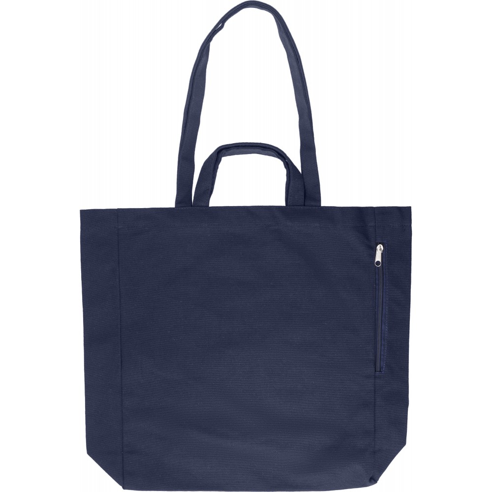 Újrahasznosított pamut bevásárlótáska rövid és hosszú füllel. Oldalt cipzáras zseb. 350g/m2