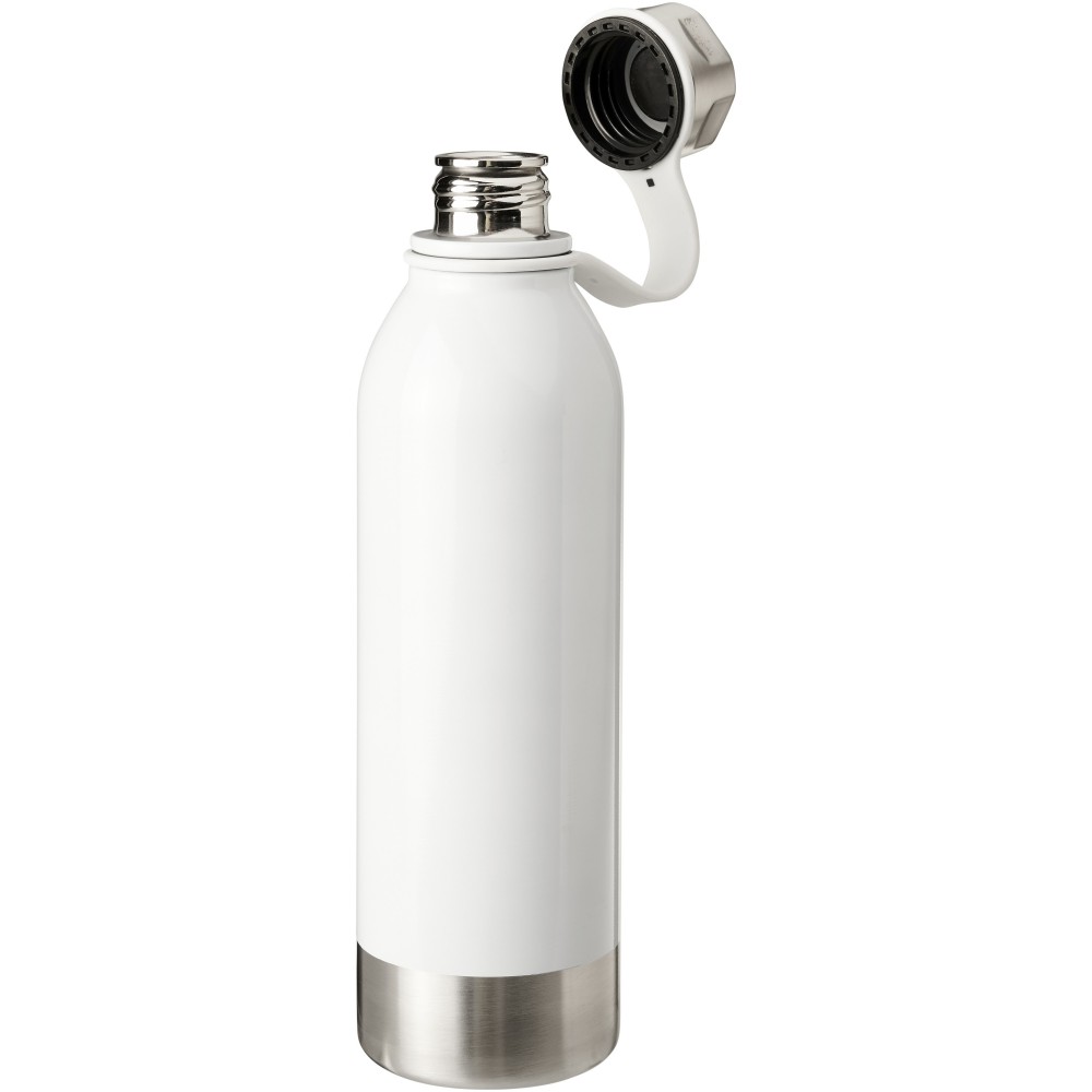 A Perth 740 ml-es rozsdamentes acél sportpalack nem csak a szemet gyönyörködteti minden asztalon, hanem ideális az erdei séta során is. A csavarozható teteje és a kényelmes szilikon fogantyúval ellátott rozsdamentes acél fedél megkönnyíti a palack hordozhatóságát. Ráadásul a kupak soha nem vész el. A fehér és ezüst színkombináció stílusos megjelenést kölcsönöz a palacknak. Szivárgásmentes. Szénsavas italokkal nem használható. Mosogatógépben nem mosható és mikrohullámú sütőben történő melegítésre nem alkalmas.