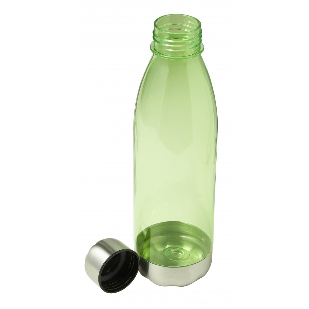 Vizespalack csavaros kupakkal. Űrtartalom: 650 ml. Nem szivárgásmentes. Mosogatógépben nem tisztítható. Rozsdamentes acél kupak és alj. AS műanyag.