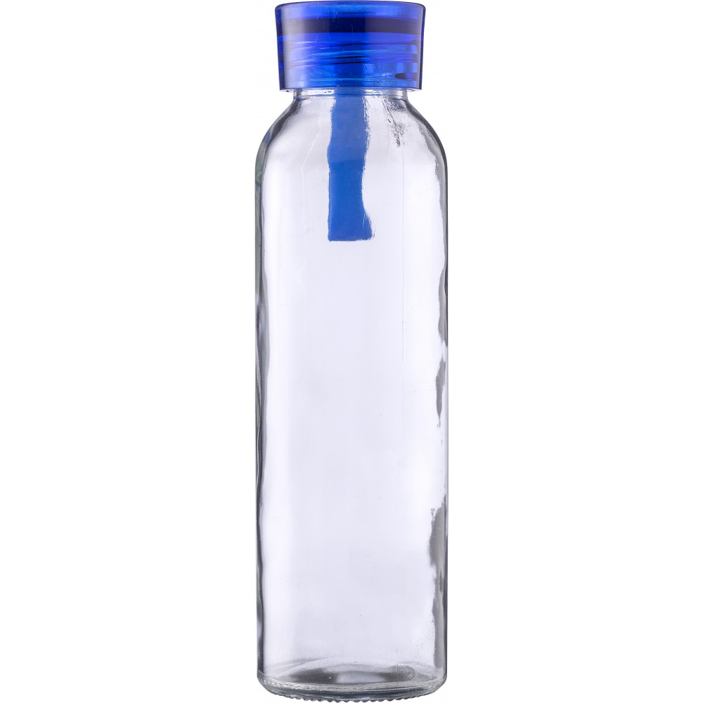 Üveg vizespalack színes kupakkal és pánttal. Csomagolása kraft papírdoboz. Űrtartalom: 500 ml.