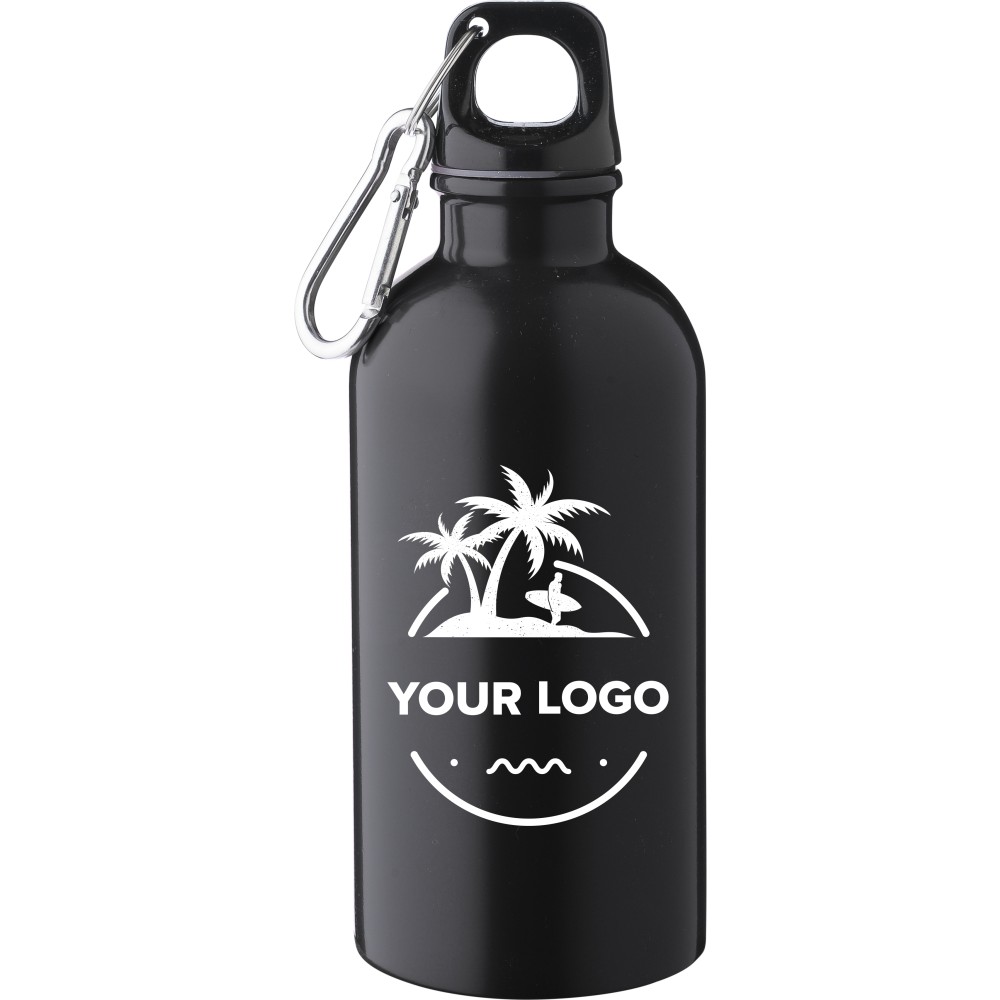 Újrahasznosított rozsdamentes acélból készült 400 ml-es szimplafalú kulacs PP kupakkal és alumínium karabinerrel. Az újrahasznosított anyagra utaló logó a palackra van gravírozva. Mosogatógépben nem tisztítható.