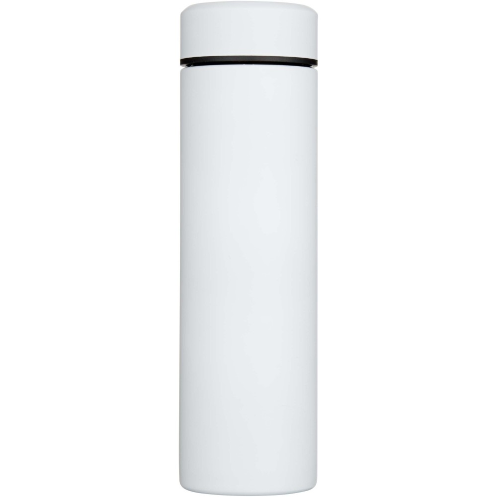 Duplafalú, vákuumszigetelt rozsdamentes acélból készült termosz, amely hosszú ideig tartja az italokat a kívánt hőmérsékleten. A kényelmesebb használat érdekében egy kivehető teaszűrőt tartalmaz. A 450 ml-es űrtartalom és a szivárgásmentes kialakítás révén ideális választás a mindennapi használatra vagy utazásokhoz.